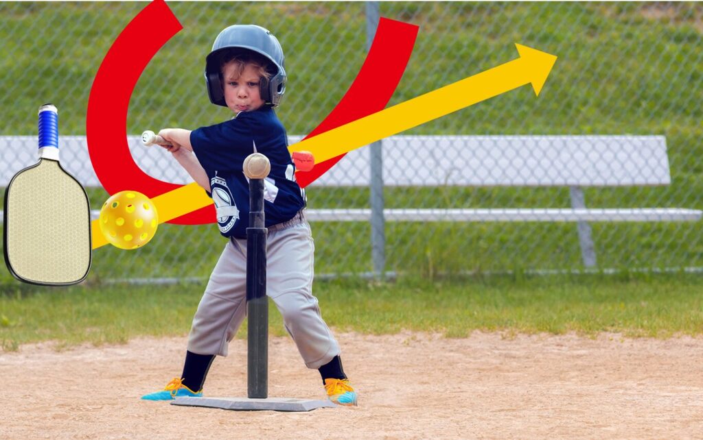 ですがピックルボールでは、右利きの場合、右半身側でスイングが終わるのが基本です。その方が振り出したパドル面は打ち出した方向にできるだけ長く向いた状態に維持できます。