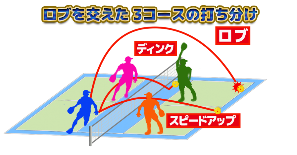 通常のディンク、スピードアップ、そしてセンター付近へトップスピンをかけたロブ。