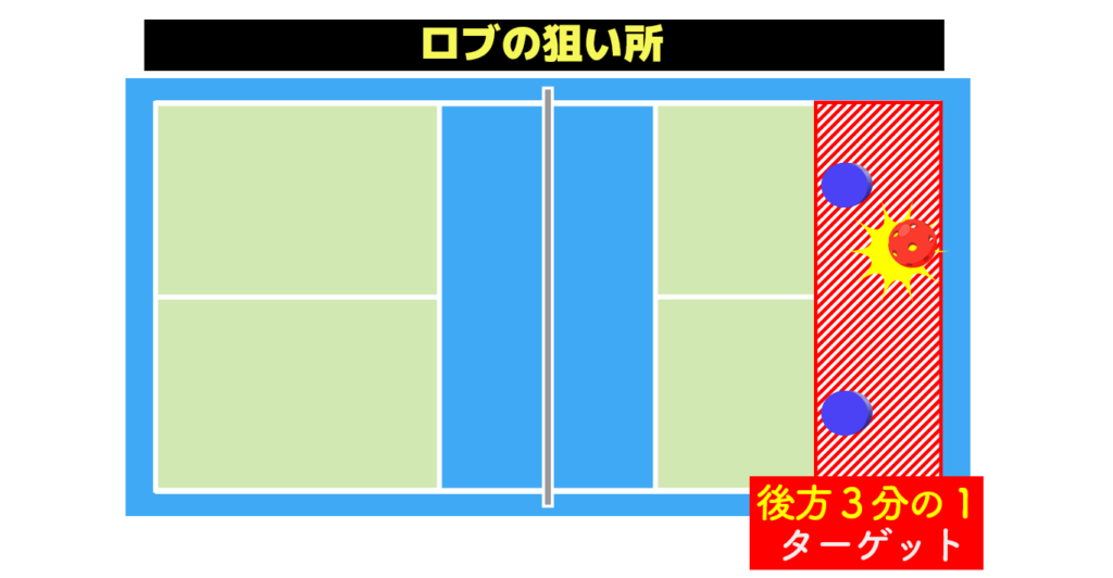 以前、ピックルボールのロブはテニスと違って、ベースライン上から打つディフェンシブなショットではない。