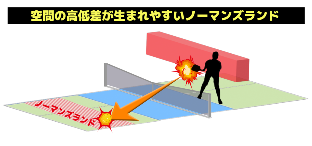 ピックルボールには「ノーマンズランド」(無人地帯)と呼ばれる、本来ならそこに位置取りすることは好ましくないとされる場所があります。