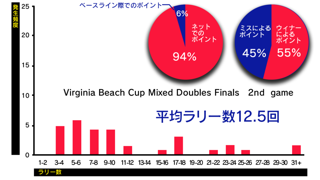 第1ゲームは35回、第2ゲームは39回と45回。30回以上に及ぶラリーは4度もありました。