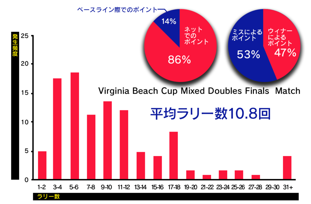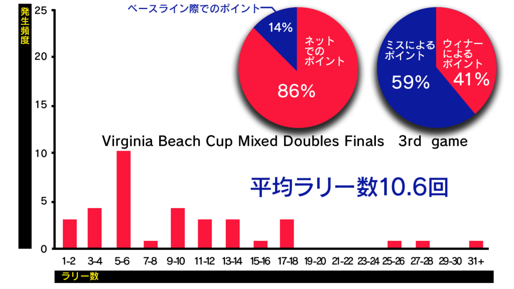 最も多くポイントが決着するラリー数は5-6である、ということが分かっています。