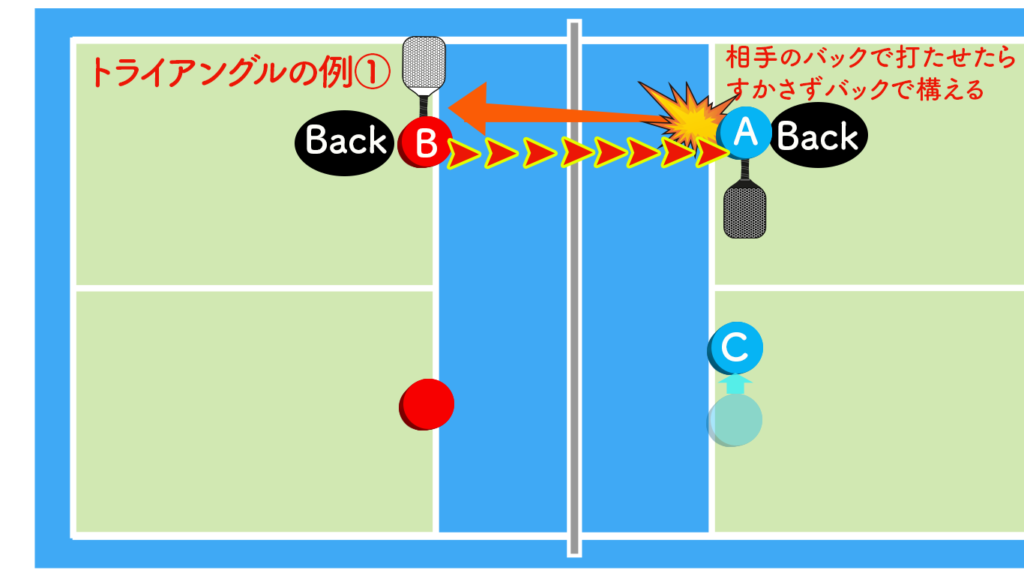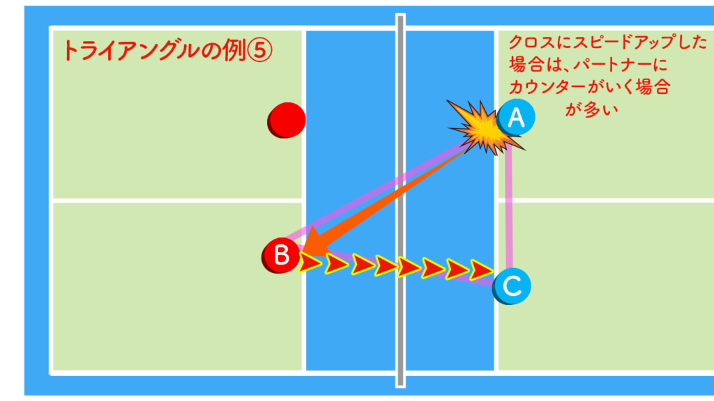 「弱いBのバックを攻めたいから、あなたの正面に来るカウンターのカバーをお願い」と、事前に連係を取れるといいですね。