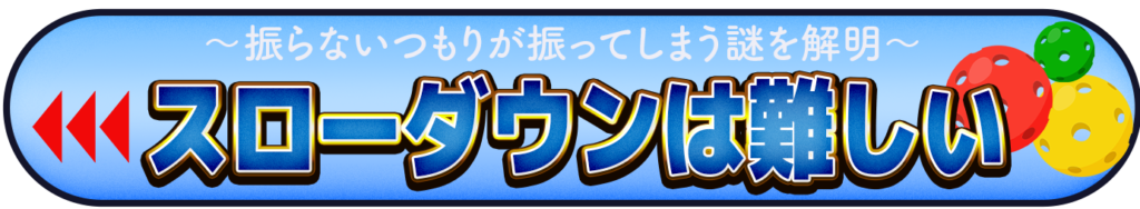 いくらスローダウンさせようと思っていても実際はスイングしたりヒットしてしまっています。それではスピードは落ちません。スイングするとボールに勢いがつき、カウンターを食らいます。目指しているものとは逆の効果になります。