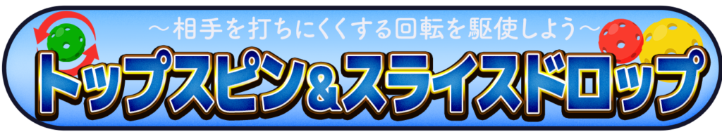 今回は、プッシュドロップを少し進化させたトップスピンドロップ(時にロールドロップとも呼ばれます)とスライスドロップについて、ご紹介したいと思います。