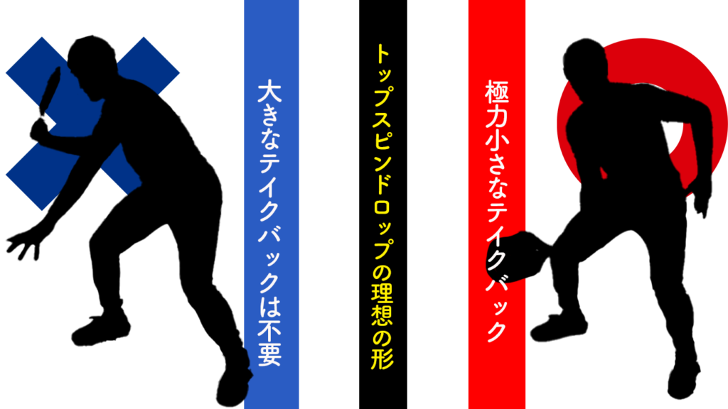 トップスピンドロップもスライスドロップも、とにかくテイクバックの時点で