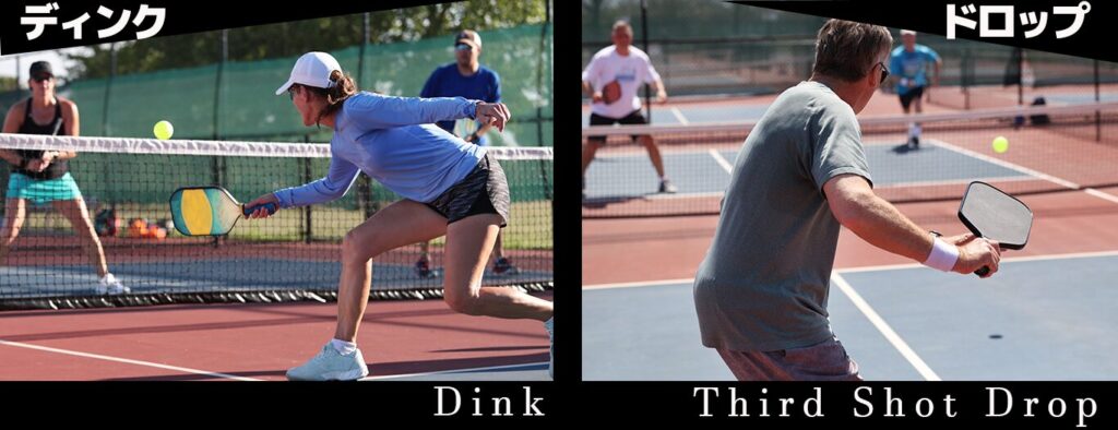 ピックルボールの場合は、スローなボールで相手に攻撃を許さない状態を作って、自分が前に進むという戦術です。