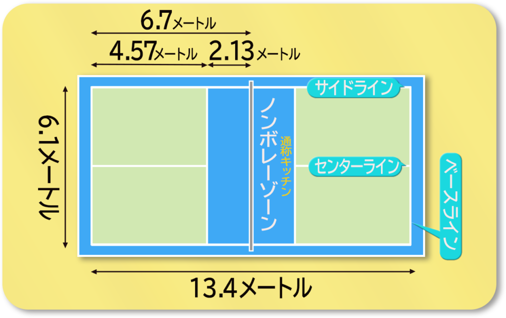 なにせ、ベースラインからキッチンラインまでの距離は4.57mしかありません。