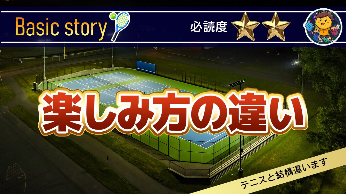 テニスとの違いpicklebouya4ピックルボールを始める方へテニス経験者の良いこと悪いこと 転向組は成功できる? プロの経験者割合は? 卓球VSバドミントン テニスとのボレーの違い スマッシュの違い ピックルのロブを考える ピックルとテニスの差① ピックルとテニスの差② 反応時間0.24秒の攻防 キッチンのフットワーク ピックルIQを高めよう ボレー高さによる支配 スライスを考える① スライスを考える② バックボレー極めよう① バックボレー極めよう② 楽しみ方の違い ドロップの違い① ドロップの違い② ドロップの違い③ ドライブのコツ 片手バックのコツ 両手バックの使い所 両手バックのコツ サーブのルーティンピックル坊や勝手に広めるンルンProfile大阪府生まれ。大学までテニス部。大阪から情報発信。ピックルに目覚め、ルンルン楽しく上手くなれるのか検証中プロフィールを読むXInstagramYouTube